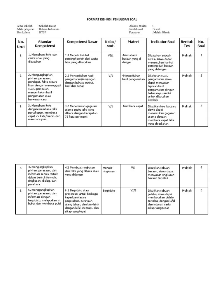 Format Kisi Kisi Penulisan Soal / Contoh Format Kisi Kisi Soal Sd Ktsp Barisan Contoh / Ktsp alokasi waktu jumlah soal penyusun ::