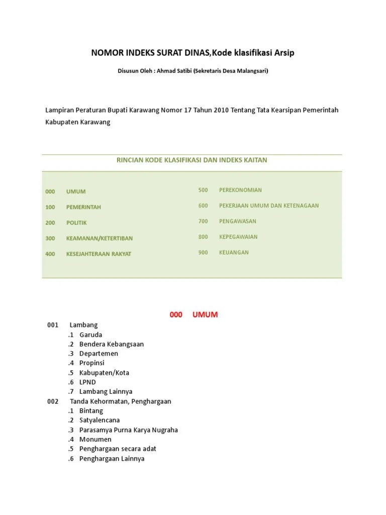 Kode Surat Dinas Xls / Nomor Indeks Surat Dinas / Ahmad satibi (sekretaris desa malangsari).