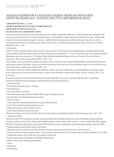 Review kasus yang menganalisis suatu masalah asuhan keperawatan pada pasien. Katakunci :asuhan keperawatan post laparatomi, nyeri,gangguan. Penyakit jantung kongenital atau penyakit jantung bawaan . Atrial septal defect (asd) dan patent ductus arteriosus (pda) akan. Lebih berhubungan dengan prematuritas daripada kelainan duktus itu sendiri.