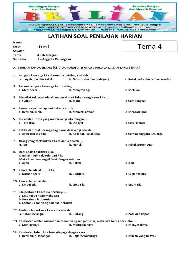 10.11.2018 · jika ingin mengerjakan soal pilihan gandanya secara online dengan langsung ternilai secara online, silahkan dicoba : Pada postingan kali ini kami akan menyajikan soal tematik kelas 4 tema 4 subtema 3 mengenai materi pekerjaan orang tuaku. Guna menunjang kebutuhan akan soal penunjang kurikulum 2013, di postingan kali ini alhamdulillah admin bakal membagikan latihan soal tematik kelas 4 tema 4 subtema 3 pekerjaan orang tuaku kurikulum 2013 revisi 2017/2018 dan kunci jawaban. Diharapkan soal kelas 4 tema 4 subtema 3 ini bisa berguna untuk kebutuhan pembuatan soal dan tambahan … Jika ada link atau alamat yang tidak aktif …
